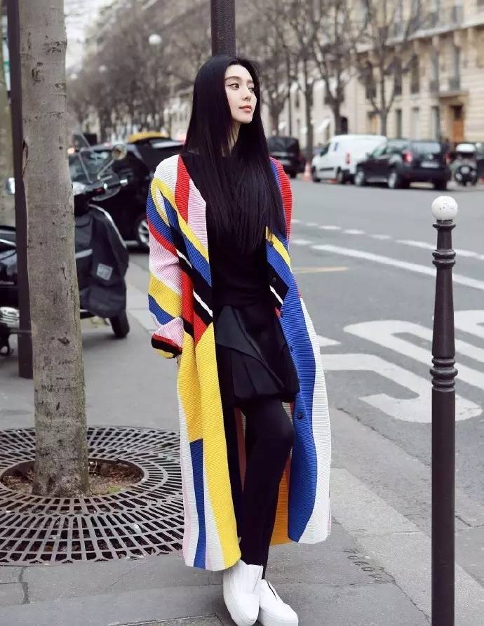 长款针织开衫也是范冰冰的爱,今年非常流行彩色针织外套,内搭选择可以尽量简洁。▼