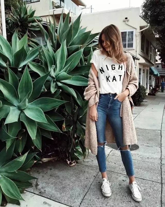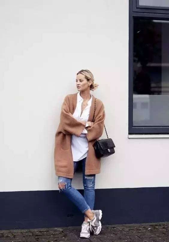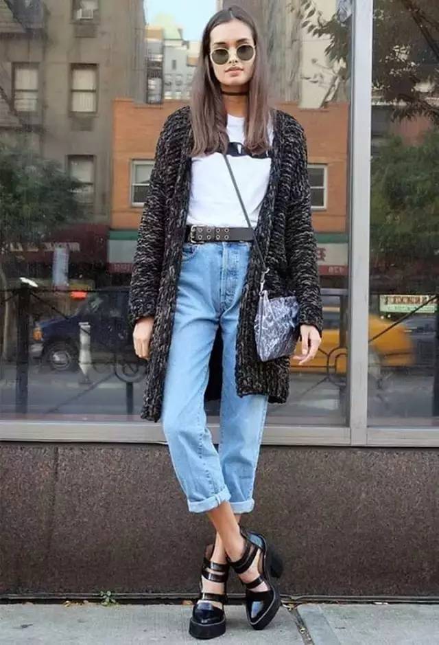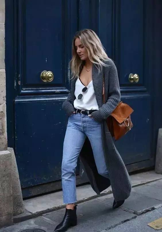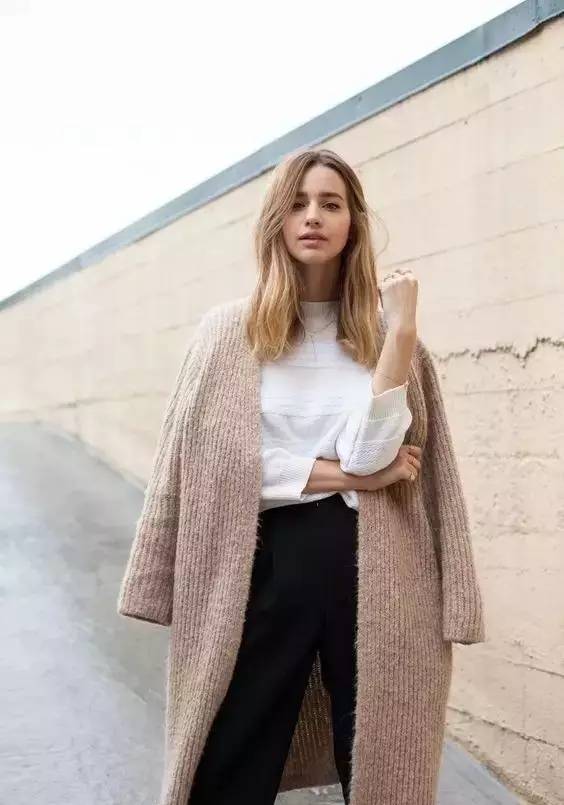 长款的针织外套+白T恤or衬衣+牛仔裤的组合,这一招应该是最简单的啦~▼
