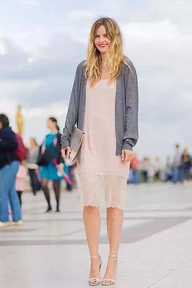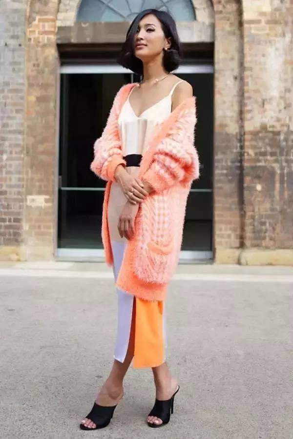针织外套和连衣裙这个组合也很常见,相信不陌生。▼