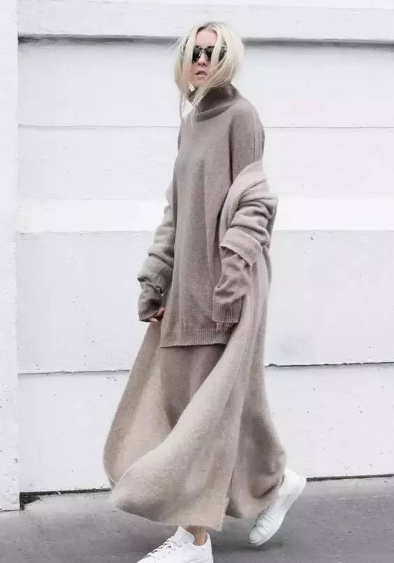 喜欢简约style的小马达们可以用针织外套玩“性冷淡”风,比如全身一个色,以纯色素色为主。▼
