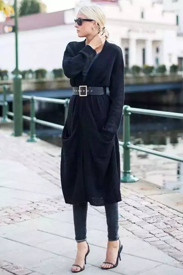 金小妹这件宽松针织外套内搭紧身黑衣黑裤,走起路来都带风。▼