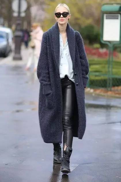 喜欢简约style的可以用针织外套玩“性冷淡”风,比如全身一个色,以纯色素色为主。▼