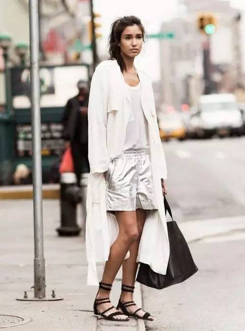 因为是长款,小个子的就要注意搭配,不然会显矮噢!搭配短裤、短裤和高跟鞋,让腿部肌肤露出来才会显高~▼