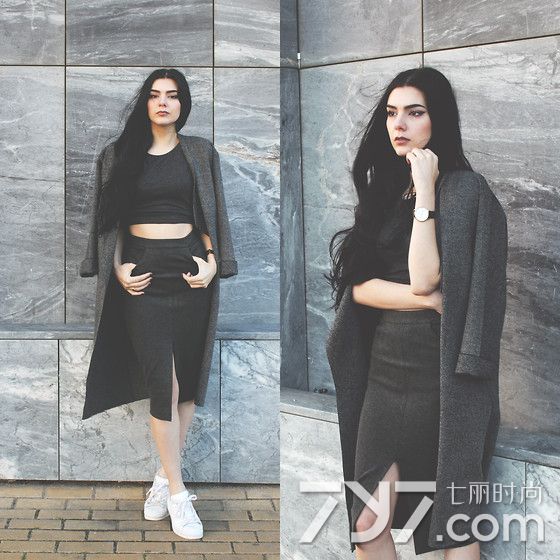 各种浅灰、深灰色大衣内搭同色单品就是葡萄牙博主Holynights Claudia的穿衣套路。