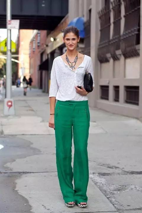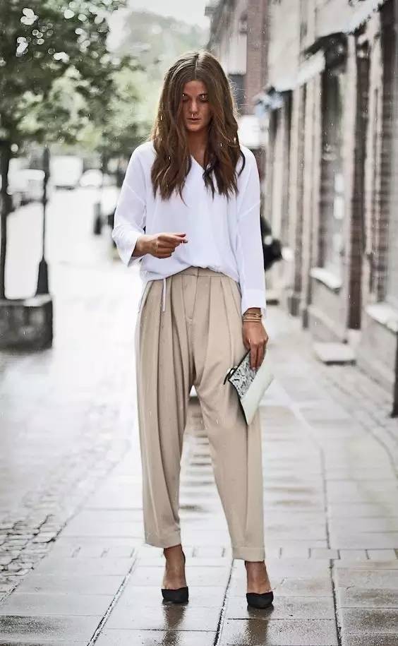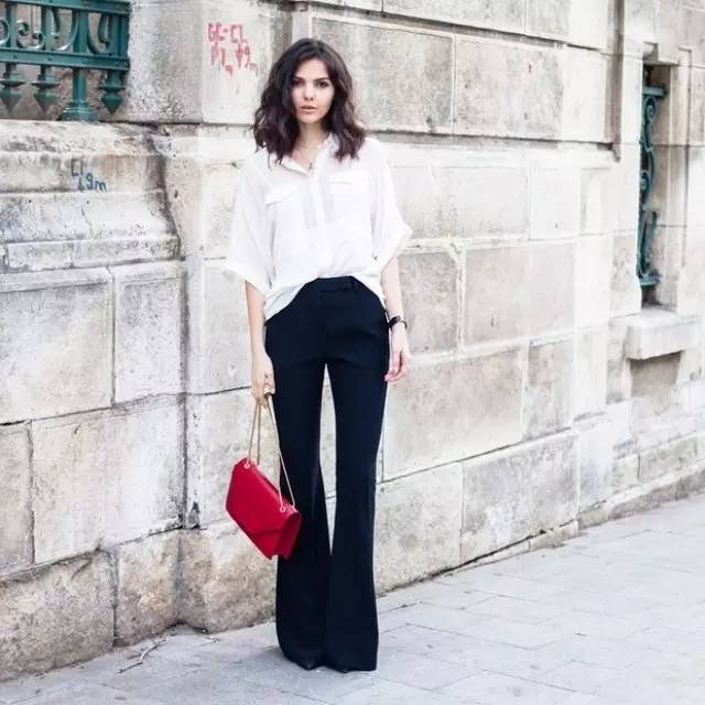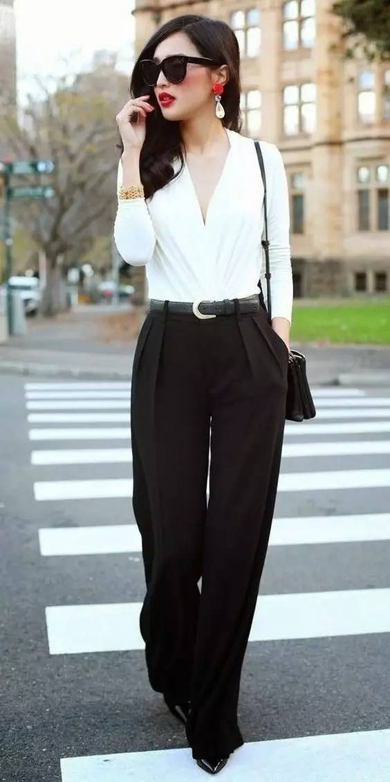 如果你是小个子女生,一定要选择高腰的阔腿裤款式,把衬衫压进裤腰,这个穿法最能够拉长你的双腿,给人以“肚脐以下都是腿”的即视感,轻松打造出完美比例。顺便把最容易显胖的小腿粗完美隐藏。无论是搭配高跟鞋 or 平底鞋,都能让你看上去且高且瘦时髦指数满分。