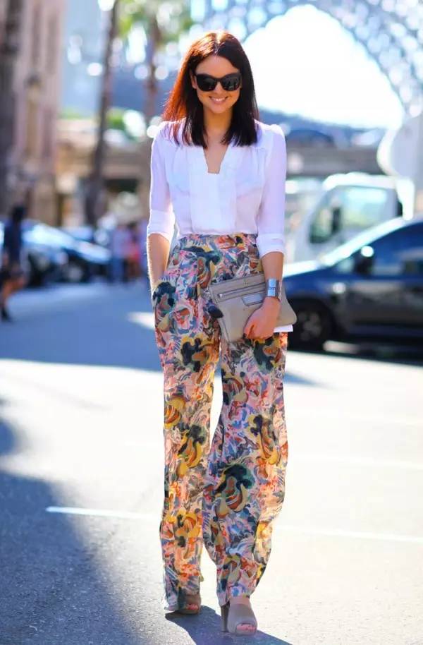 阔腿裤+衬衫不仅适合工作场合,出街时所需的随意休闲范儿也是轻而易举的就能打造的。在衬衫的选择上花些心思,不用太中规中矩的白衬衫,花色、牛仔、BF 风,一点小变化,整体感觉就不一样了。