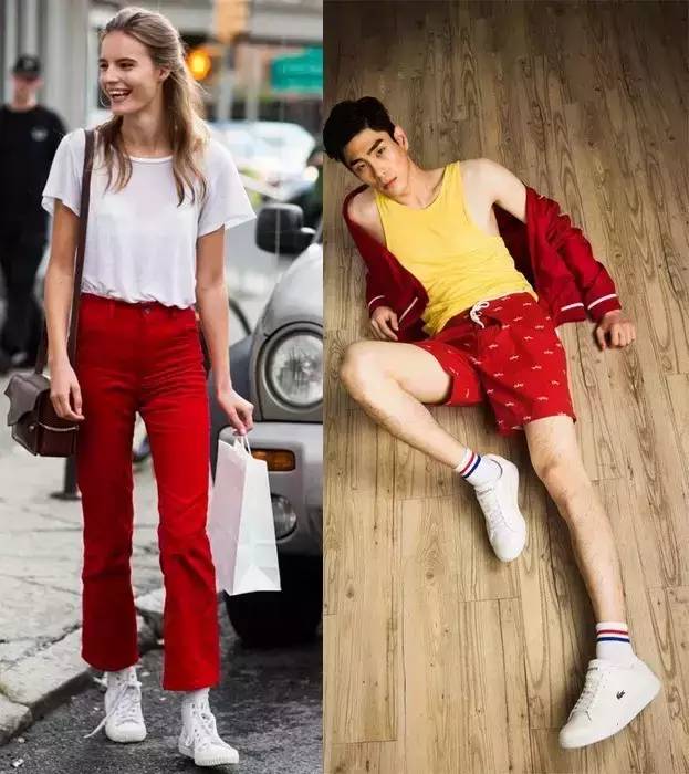 想当一对让旁人羡慕的情侣,选择超级抢眼的红色做为批次的呼应色,火辣辣的颜色,走到大街上,你们就是一道艳阳的景色!踩双白球鞋怎么都十分的般配!男生穿着短装运动裤配运动外套,想必,路人的眼球都离不开超闪的两位!