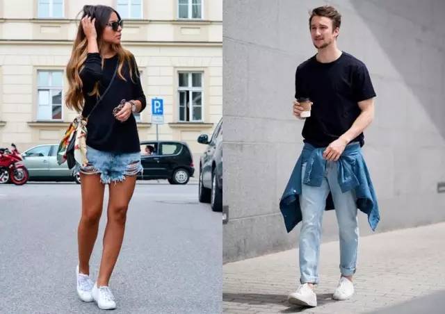 夏天,一个充满激情的季节最适合就是周末出游啦,情侣间穿上白上衣搭上黑色的牛仔裤,配上白球鞋绝对不出错的情侣黑白搭配!男友若走个披掛路线,随意在腰间绑上衬衫,最后就以同色系的配件来呼应彼此!