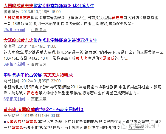 很多媒体报道黄志忠时,喜欢用“大器晚成”来形容他,尤其是自《人间正道是沧桑》热播之后。