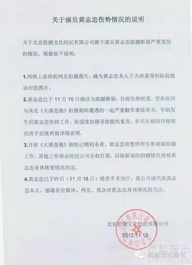 在拍摄《大漠苍狼》时跟腱断裂,他选择既不打同情牌也不耽误剧组进度,带伤坚持拍戏,最后被粉丝爆出打石膏照片,经纪公司随后还为此发表声明。