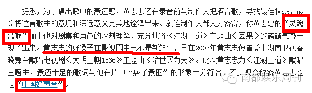 所谓不鸣则已,一鸣惊人,大概就是如此。当时媒体也都对黄志忠的好嗓子大加赞美