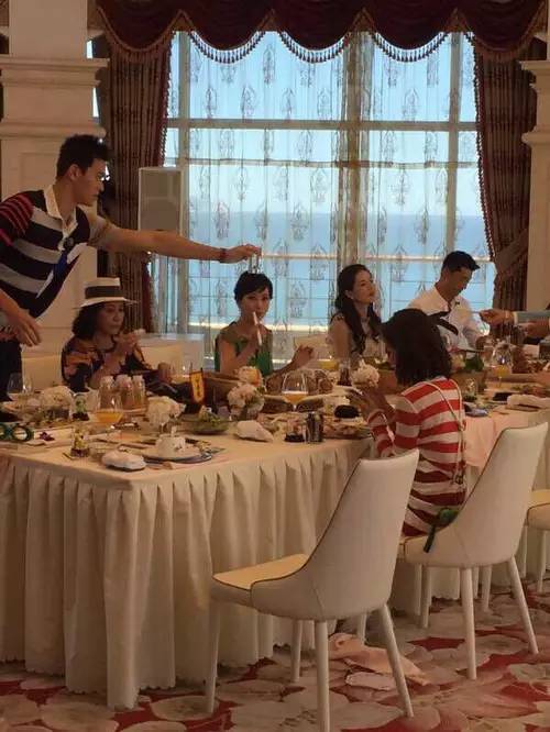 吃饭的时候,杨杨不知给谁递了杯水,猛一看还以为把水杯放在了赵雅芝头上,