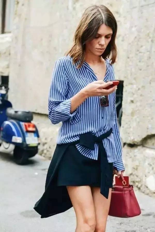条纹单品最常见的自然是top款,但是条纹半裙也是很出彩的单品之一,看街拍就知道了~