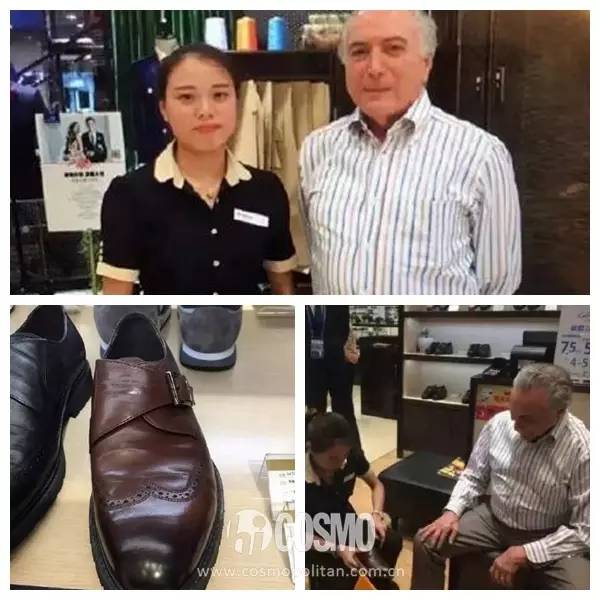 不光着夫人们忙,巴西总统特梅尔自己也在开会的空档元买了一双皮鞋和一个玩具狗。
