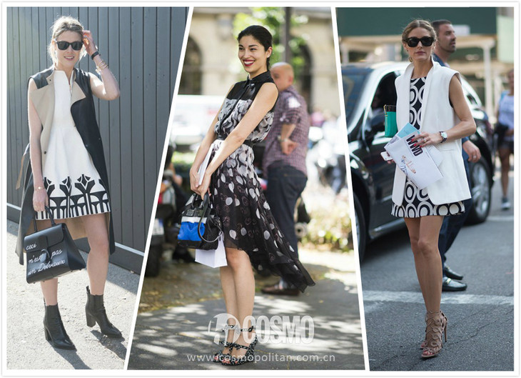 白色和黑色是最保守低调不出错的颜色,圆形图案更柔美,用大面积纯色遮盖,这么穿看起来就很聪明呢!