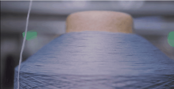 Adidas机械化生产鞋面织布后,工人们将毛边剪掉。