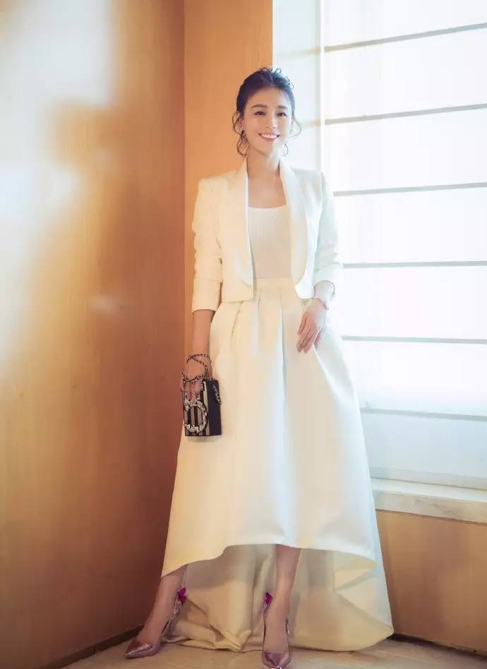 马思纯虽然是裙子,但是比穿裤子的白百何要帅气多了,发型简洁利落,半裙前短后长,还顺便拖了个尾,白色小西装职业干练。