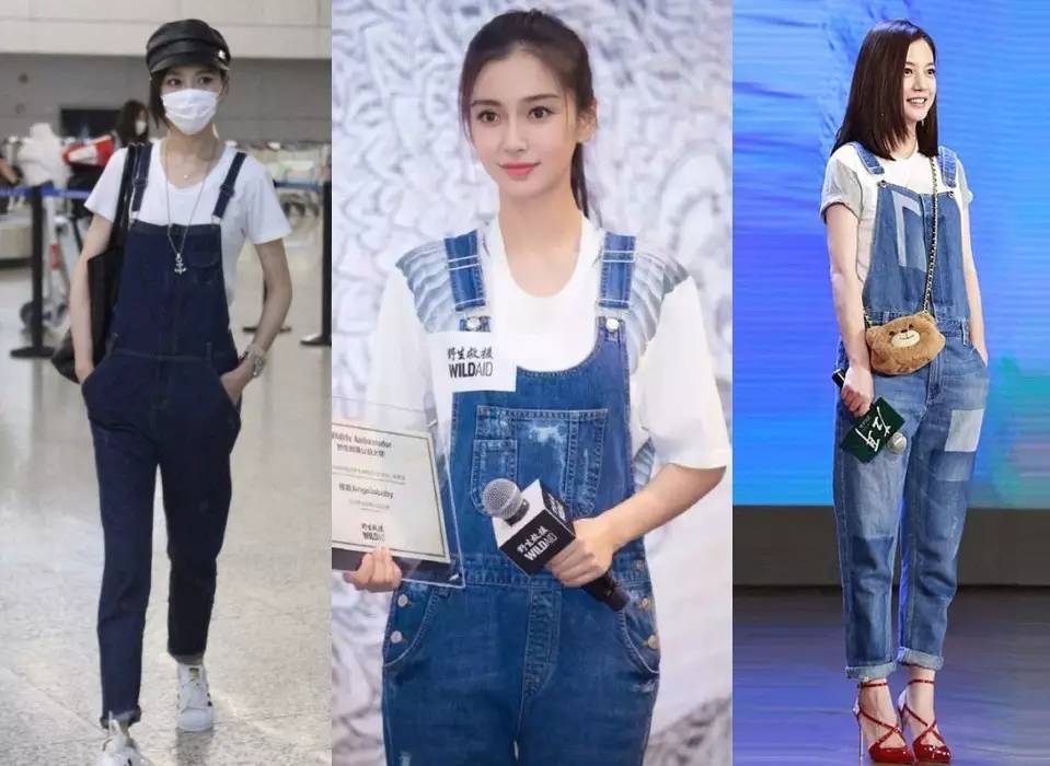 背带裤自带减龄特效,也是很多女明星居家旅行必备。