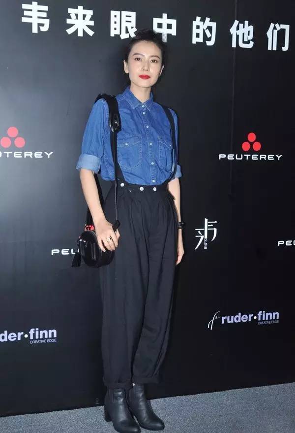 前阵子舒淇参加谢霆锋的《12道锋味》时,也穿了条背带裤,工装味更浓。