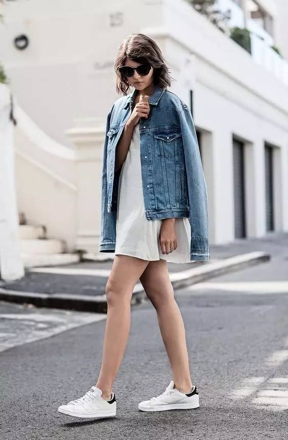 牛仔面料和背带裤一样,都是自带减龄特效的主,比如牛仔外套,像舒淇一样在里面搭条吊带裙正是这个季节的常用穿法,很有校园的feel~