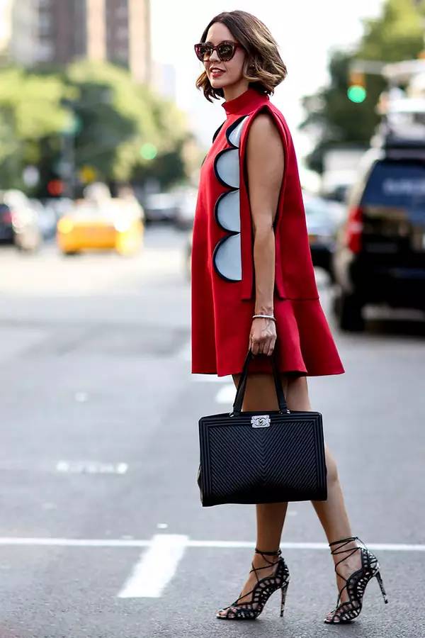 超级吸睛的红色鞋子和包包组合在一起,可以瞬间点亮整身搭配,如果你的衣服刚好黑白灰居多,那么用红鞋红包来搭配,可以为单调的“性冷淡”风增添不少妩媚的女人味。