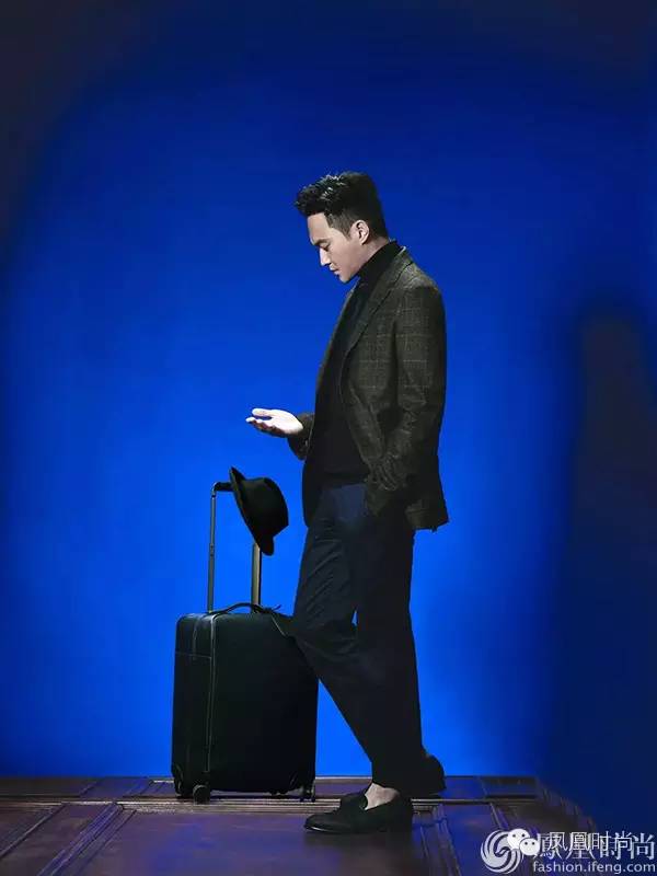 最后以大格子休闲西装和Pelle Tessuta拉杆行李箱作为造型重点,将考究的绅士气质展现无遗。