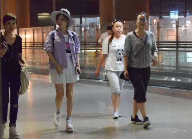 杨幂的机场街拍都还不错,短裤看不到衬出修长美腿,搭配金色运动鞋,有型又帅气。