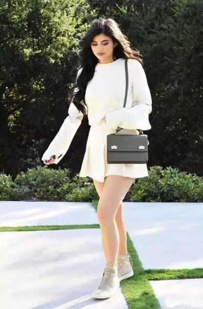 裸色的贴身连衣裙,勾勒出肯达尔·詹娜 (Kendall Jenner) 性感的曲线,搭配白色运动鞋,性感又帅气。