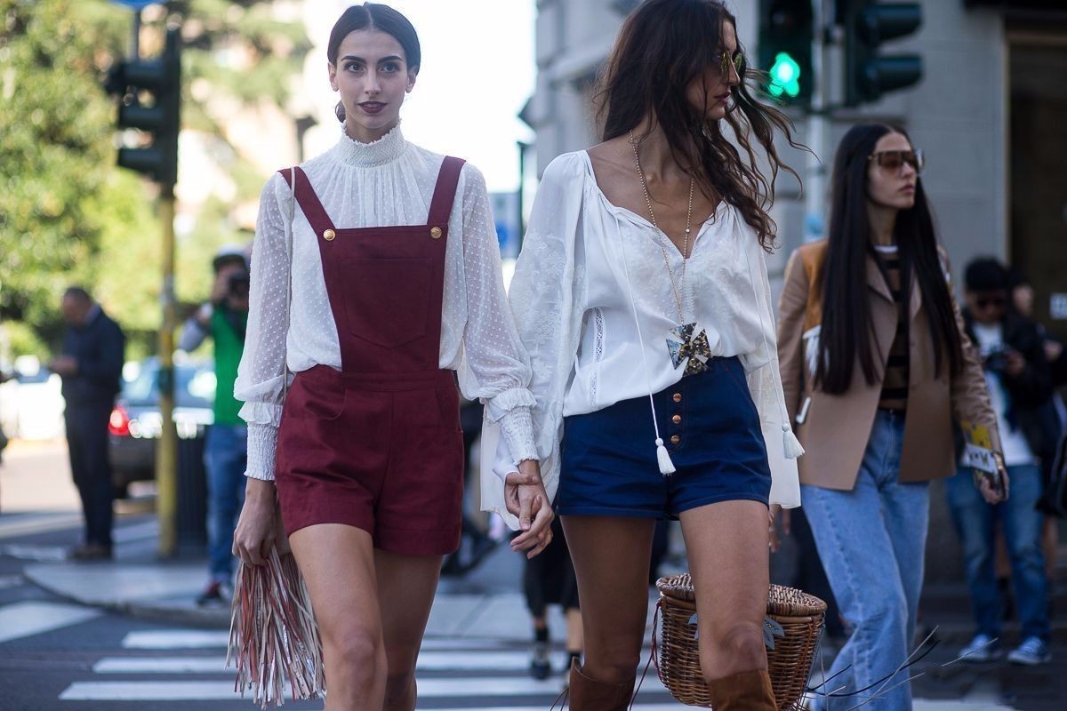 以前比较流行长款 tee 中穿打底裤,如今越来越流行将中长的 Tee 直接穿成连衣裙,露出长腿。而近几年很流行的太空棉卫衣,蓬松的大下摆再配上一条穿短裤,几乎看不见短裤的踪影,显得腿特别细。