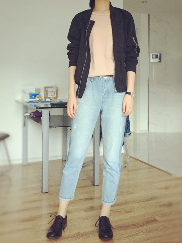 这时候体感就有点凉了,建议披个外套,薄一点的MA-1,刺绣外套都能上了,或者穿裙子的薄一点的外套也该上了。