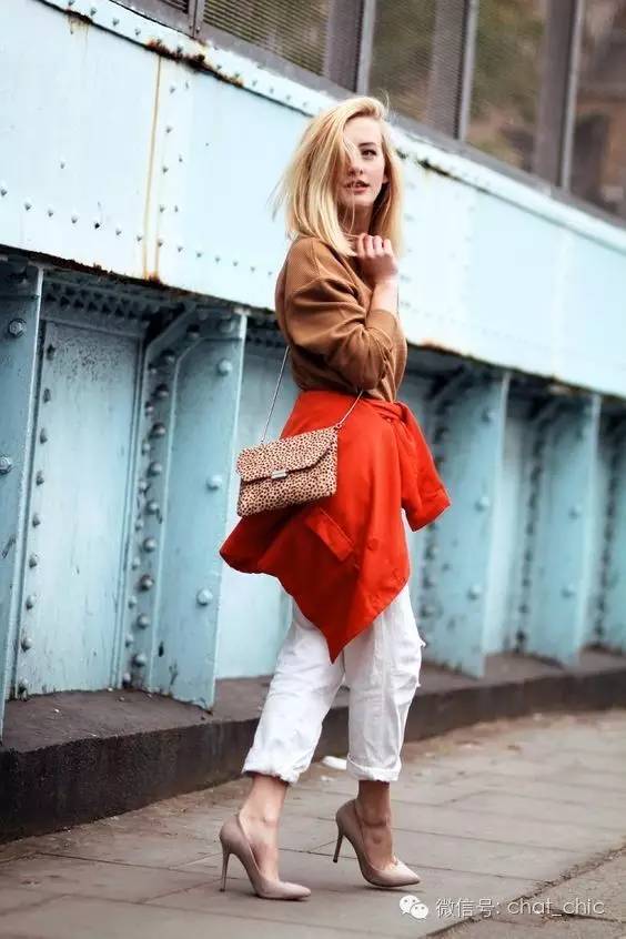 解下外套,束出腰线。这一招实用又顺其自然,妙处不用多说了。