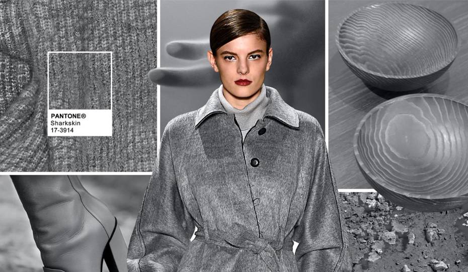 排在两大蓝色后面的是又一经典色:灰色;每年的pantone色彩指南里一定会出现的便是灰色,今年出现的是偏深色的鲨鱼灰。作为一个中性色,鲨鱼灰可以和其他任何秋季流行色搭配,也可以自成一个搭配主色调,深受minimalist极简主义者的热爱。