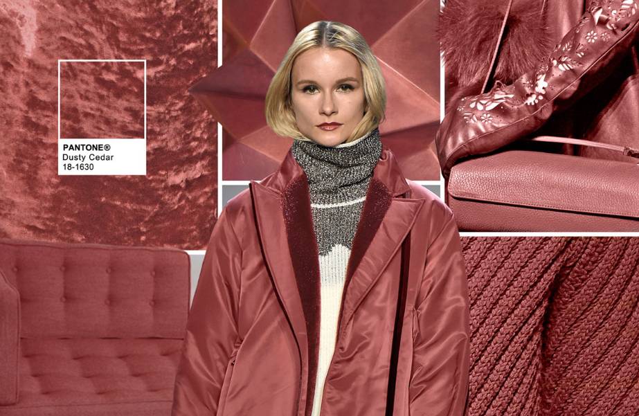 跟空气蓝一样,暗雪松色被视为是秋冬版的年度流行色玫瑰石英粉,温暖而不招摇的这个颜色是大家熟悉的暗玫瑰红(dusty rose)的近邻,和这两年流行的丝绒材质非常搭配,自带高贵优雅气场。