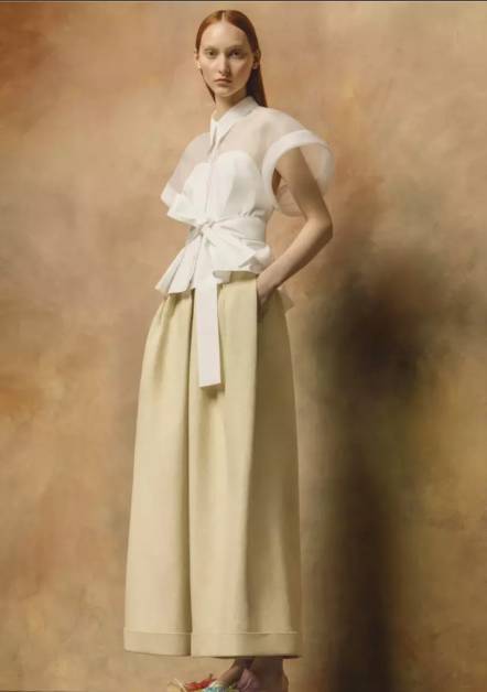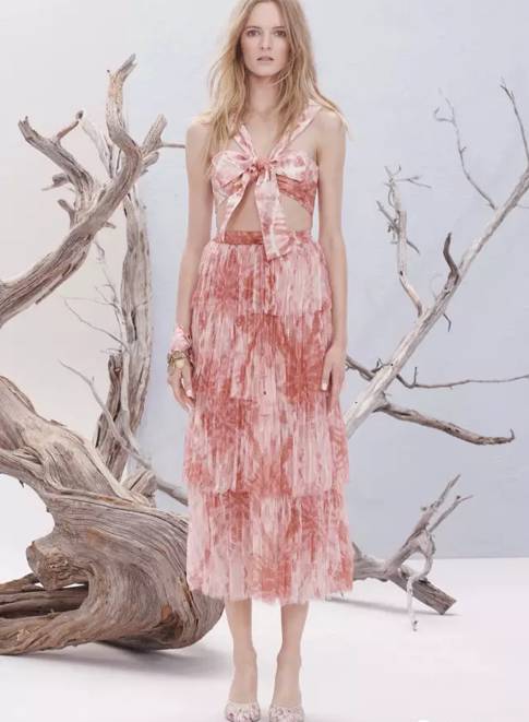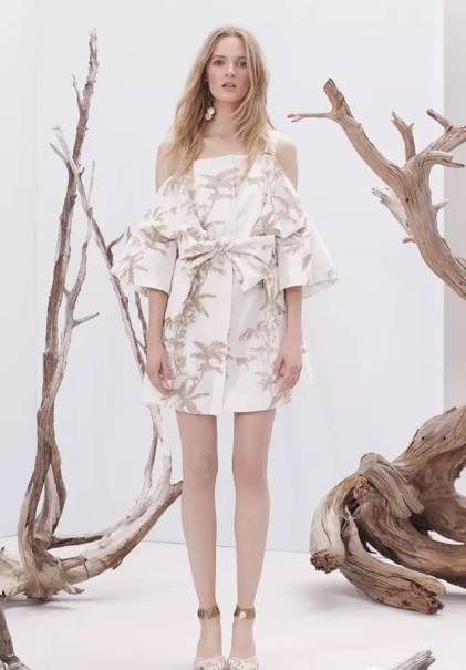 Rochas Resort的大裙摆配上蝴蝶结装束,大气的风格也掺入了小细节在里面,充满细腻的甜美。