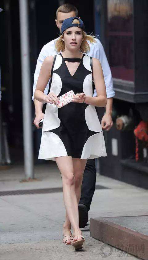 艾玛·罗伯茨 Emma Roberts,一袭白色条纹连衣裙,简约清新~
