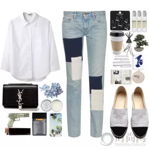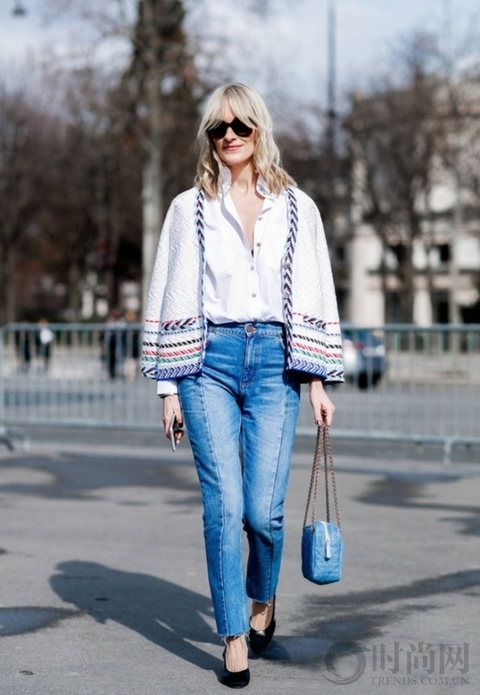 白衬衫+牛仔裤简直等同于秋天的代名词。搭配白色小香风外套,帅气十足又优雅动人。