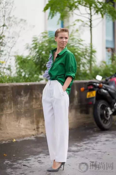 好多人都不敢轻易尝试白色裤子,因为白色“显胖”~但只要你能搭配好,将整体造型的注意力转移,放大优点,遮盖缺点,就能将白色裤子穿出新意!