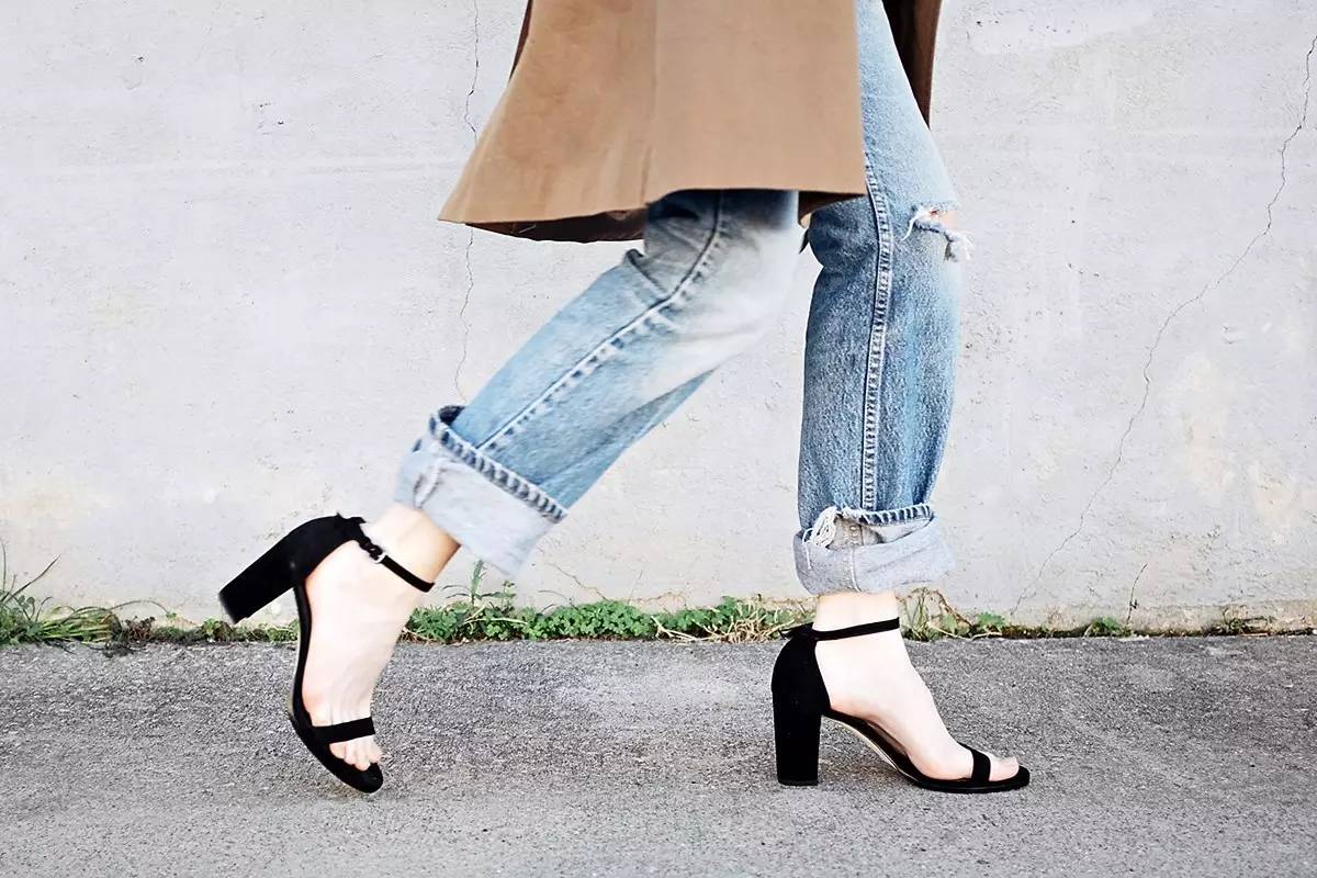 一字带凉鞋款的粗跟鞋大概是最百搭的了,相比起以往那些让你但凡走起路来就必须时刻提着气儿的妖娆细高跟,粗跟就显得和蔼多了。穿上它走起来从容又淡定,重点是,高度还在呀。