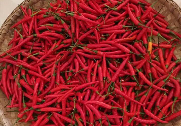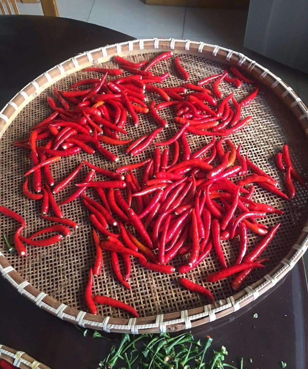 先选择好小米椒,把小米椒清洗干净,去掉辣椒把,清洗后放在框里阴干,不能有水在辣椒上面。