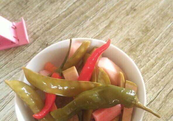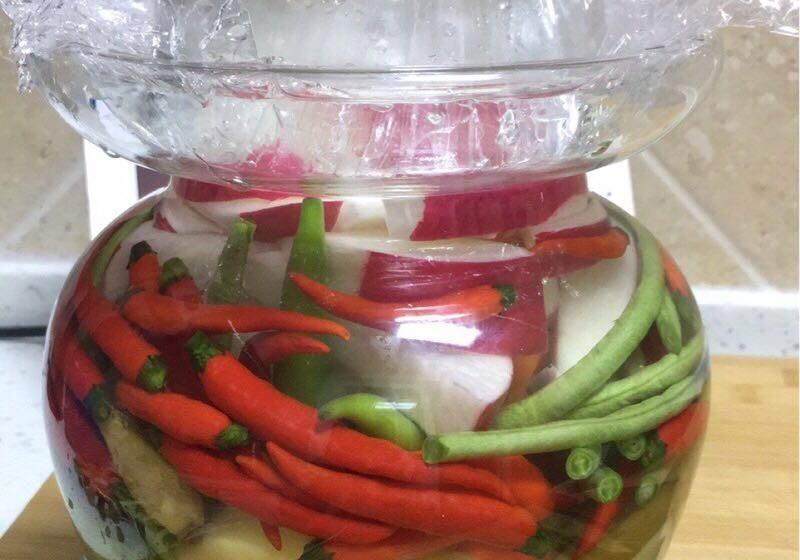 也可以放一些自己喜欢的红萝卜,豆角。全部放好后,密封好。半个月左右就可以食用了