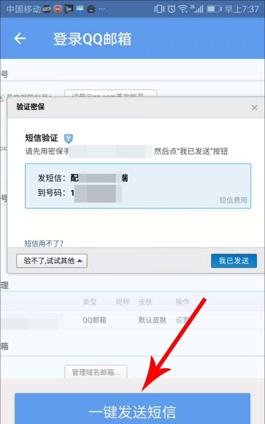 打开邮箱后点击“一键发送”,按照提示发送短信