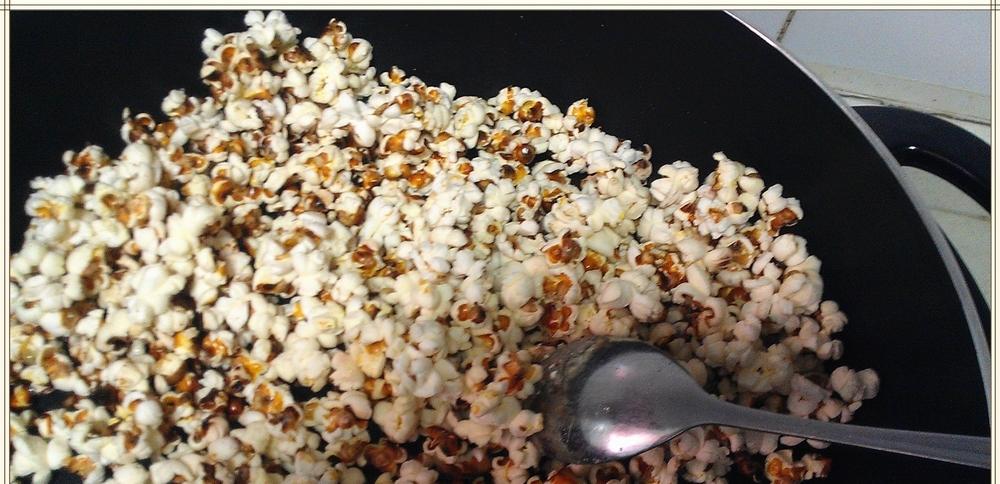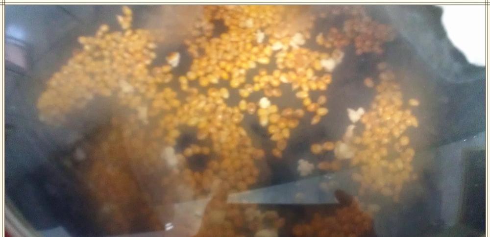 锅内出现噼里啪啦的声音,不断晃动锅体,待声音渐弱,打开锅盖,趁热撒入砂糖,拌匀即可。