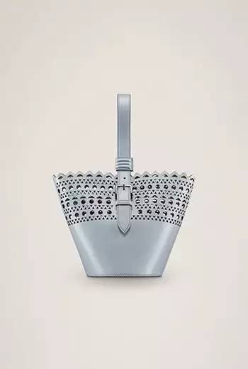 Alaia家下面这款手拎包,我在实体店见过同款其他颜色,觉得超美。手拎带配上它家最经典的镂空雕花图案,很特别。韩国女星朴孝敏拿的是2016春夏款。▼