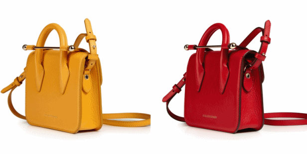 觉得M2M有点贵,可以考虑Strathberry,也是有一根细细的金属横杆。不过它家不一样的地方在于它的横杆是包包的“开关”。▼