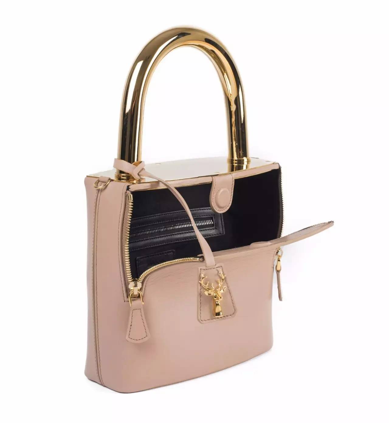 它家很经典的Lucchetto锁头包。每款包包上都会有品牌特有的鹿头logo。官网上的锁头包有白色和黑色,黑金款卖得很快,经常断货。▼