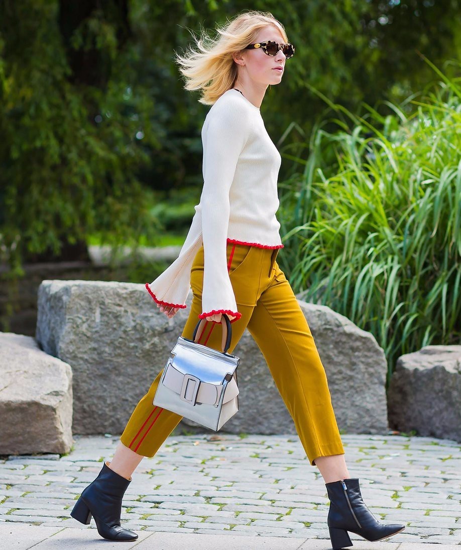 现在比较火的几款包也都是手拎包。我很早之前就预测过会火的boyy,标志性特点是一个大扣子,现在果然火得没边了,街拍中不少人都在拎它。▼