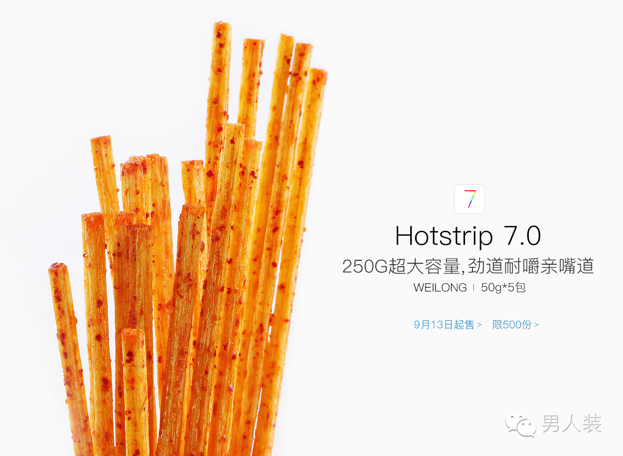 此刻,有多少同胞正对iPhone7投以炽热目光,时刻准备割去肾脏。平复一下你的躁动吧,在这个星球上,还有一款国货正在闪耀逼格。继苹果发布会之后,高贵的辣条王子,最忠诚的苹果设计风守护者——卫龙辣条也推出了新品:Hotstrip7.0。 为什么是Hotstrip 7.0? 如果你有此疑问,...阅读全文此刻,有多少同胞正对iPhone7投以炽热目光,时刻准备割去肾脏。平复一下你的躁动吧,在这个星球上,还有一款国货正在闪耀逼格。继苹果发布会之后,高贵的辣条王子,最忠诚的苹果设计风守护者——卫龙辣条也推出了新品:Hotstrip7.0。