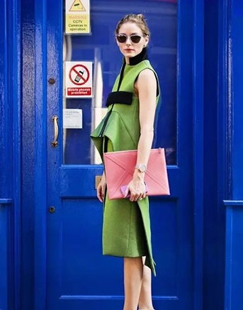 今年最流行的撞色是小面积的撞色,也就是说你的撞色包包用小只一点就可以。红蓝撞色和红绿撞色是当下最时髦的两种配色。在进行撞色搭配时,注意身上大面积的鲜艳色只有一种就够了。
