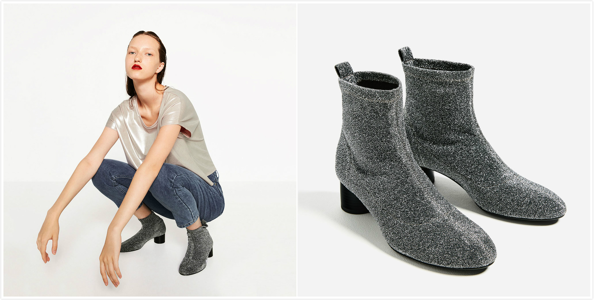 要说今年最流行的鞋子是什么?当然是粗跟短靴啦!像zara的这款银色袜型粗跟短靴,在美国上架不到一星期就“sold out”了,售罄了!到底是要有多火呀!