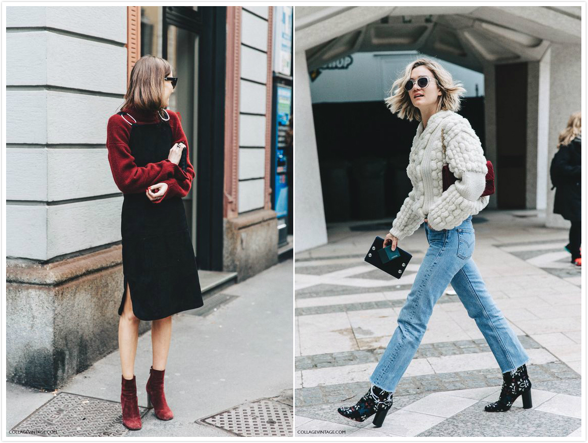 时尚icon们也早已穿上了粗跟短靴上街,随性搭裤子毛衣裙子外套,一个个都酷炫极了??